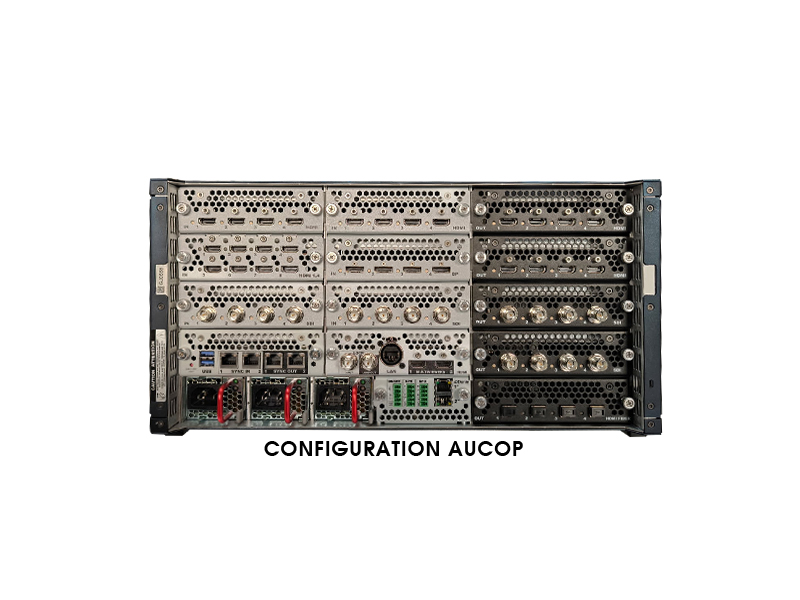 - 2 sorties HDMI 2.0 dédiées configurables jusqu’à 2x 4K30p ou jusqu’à 2x 2560×1440@60p ou 1x 4K60p (version disponible séparément avec 2 sorties Multiviewers DP 1.2)